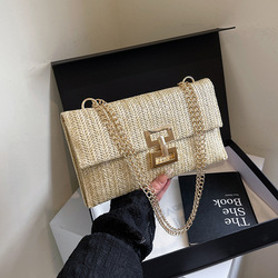 กระเป๋าสะพายไหล่สตรี2025กระเป๋าถักขนรักแร้กระเป๋าสายโซ่แฟชั่นริมทะเลใหม่ขายดี